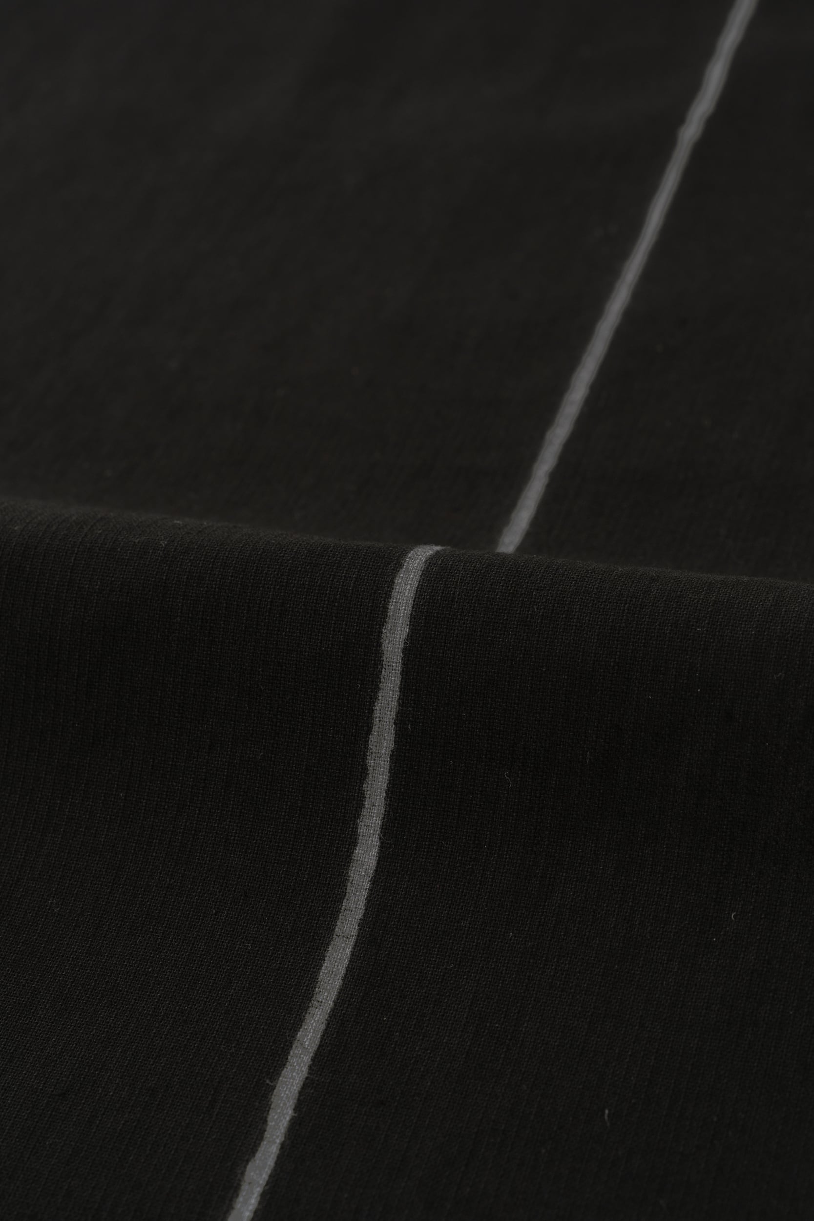 通常は先染めの糸を使用し織りで柄を作りますが、今回は同じ糸の組織で白生地を作り、その上から “型染め” を行いました。型は “一本線” でY. & SONS オリジナルです。