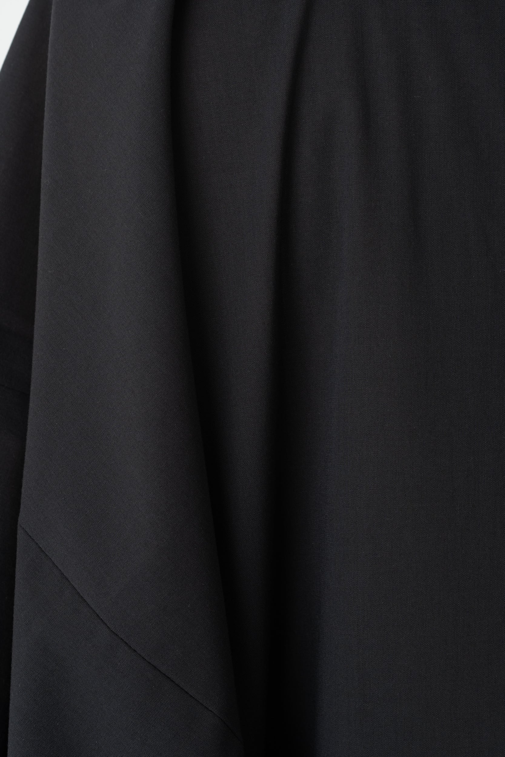 綿とウールを合わせた糸で織り上げたポプリン素材(平織)で、薄手に仕上げて通気性を向上させています。そのため、暖かい季節にもさらりとした着心地です。また、混紡糸特有の奥行と豊かな杢表現の上品な印象が特徴です。