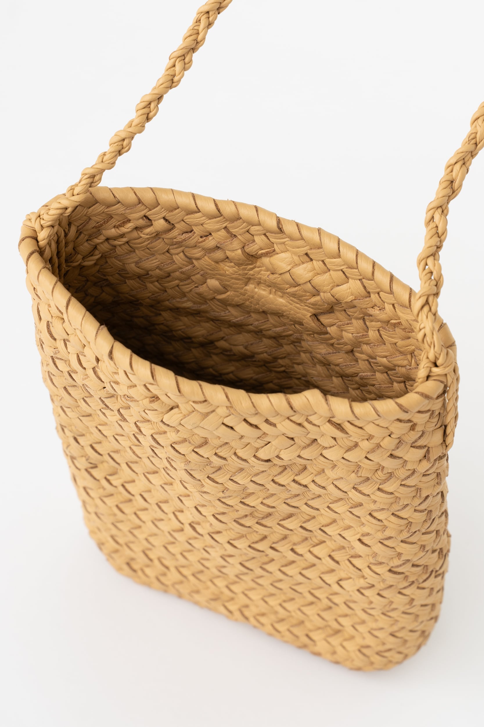 貼り合わせた革を編み込んで作られているため、内側まで美しく、使い込むことで革の経年変化を感じていただけるバッグです。