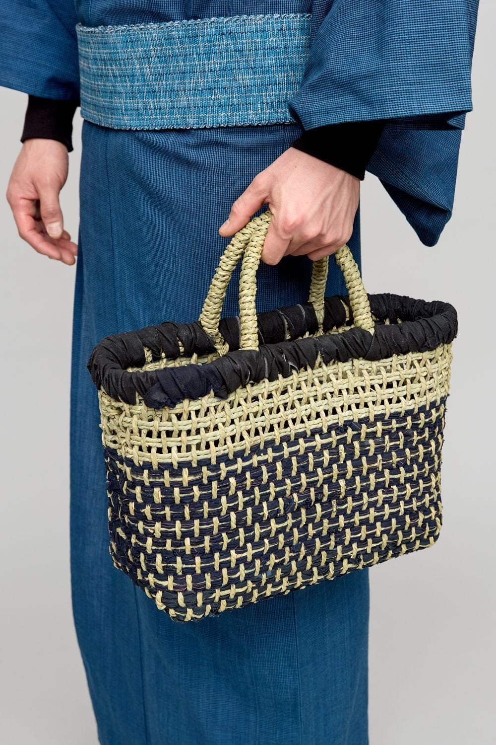私たちがこれまで大切に保管していた、きものを作る際に残った生地を使用して特別にお作りいただいたいかごです。