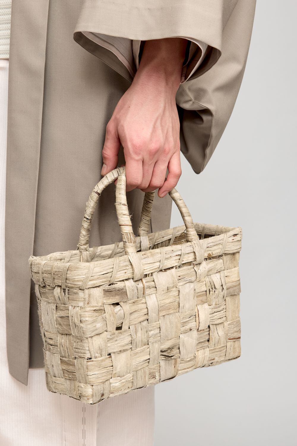 栗で染め上げた、淡いグレーが特徴のバッグで、「petit(プチ)」は、その名の通り小ぶりなサイズながら、楮ならではのしなやかさと軽さを体感いただけるシリーズです。使い込むほどに素材が手に馴染み、艶を増していく経年変化も魅力です。