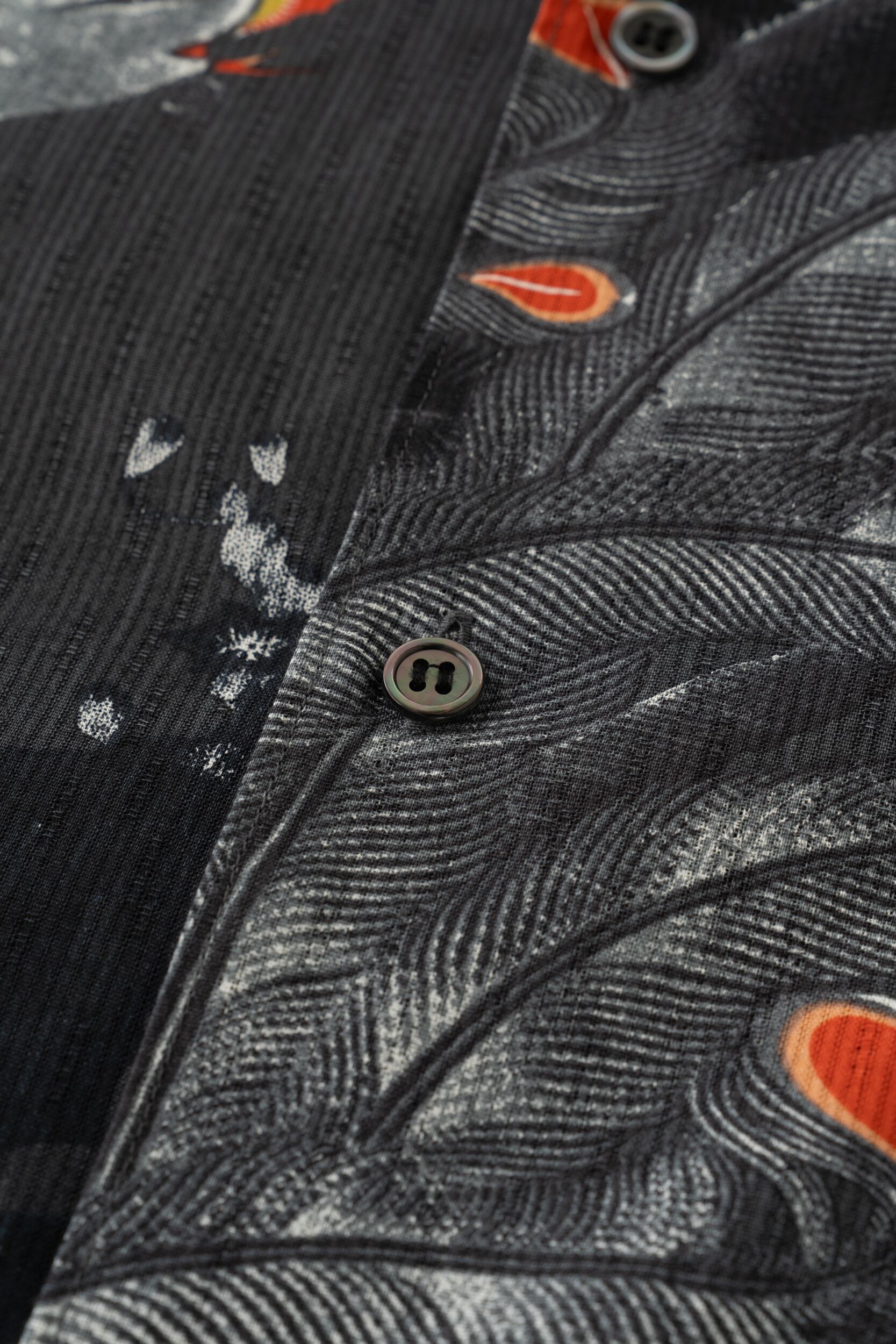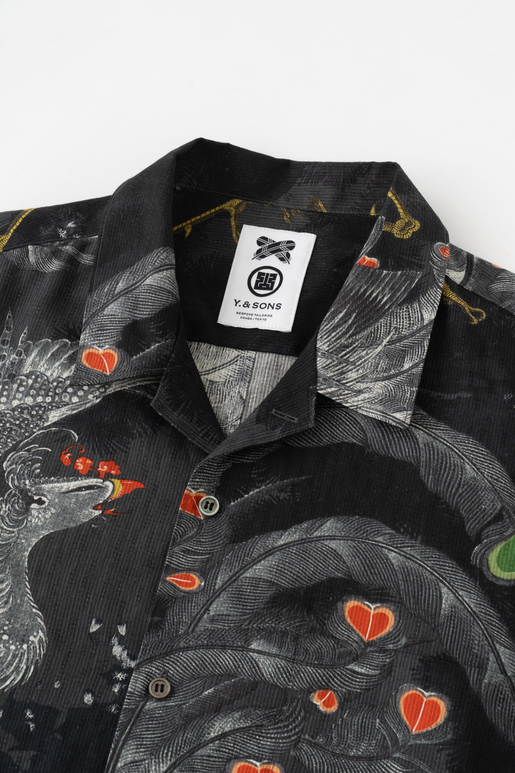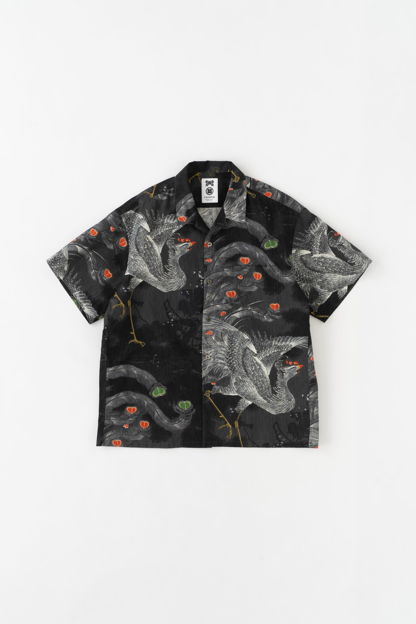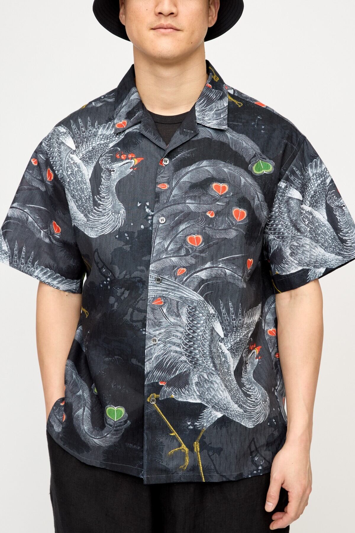 オープンカラー半袖シャツ / 型染め / 伊藤若冲 / 鳳凰図 / CHACOAL